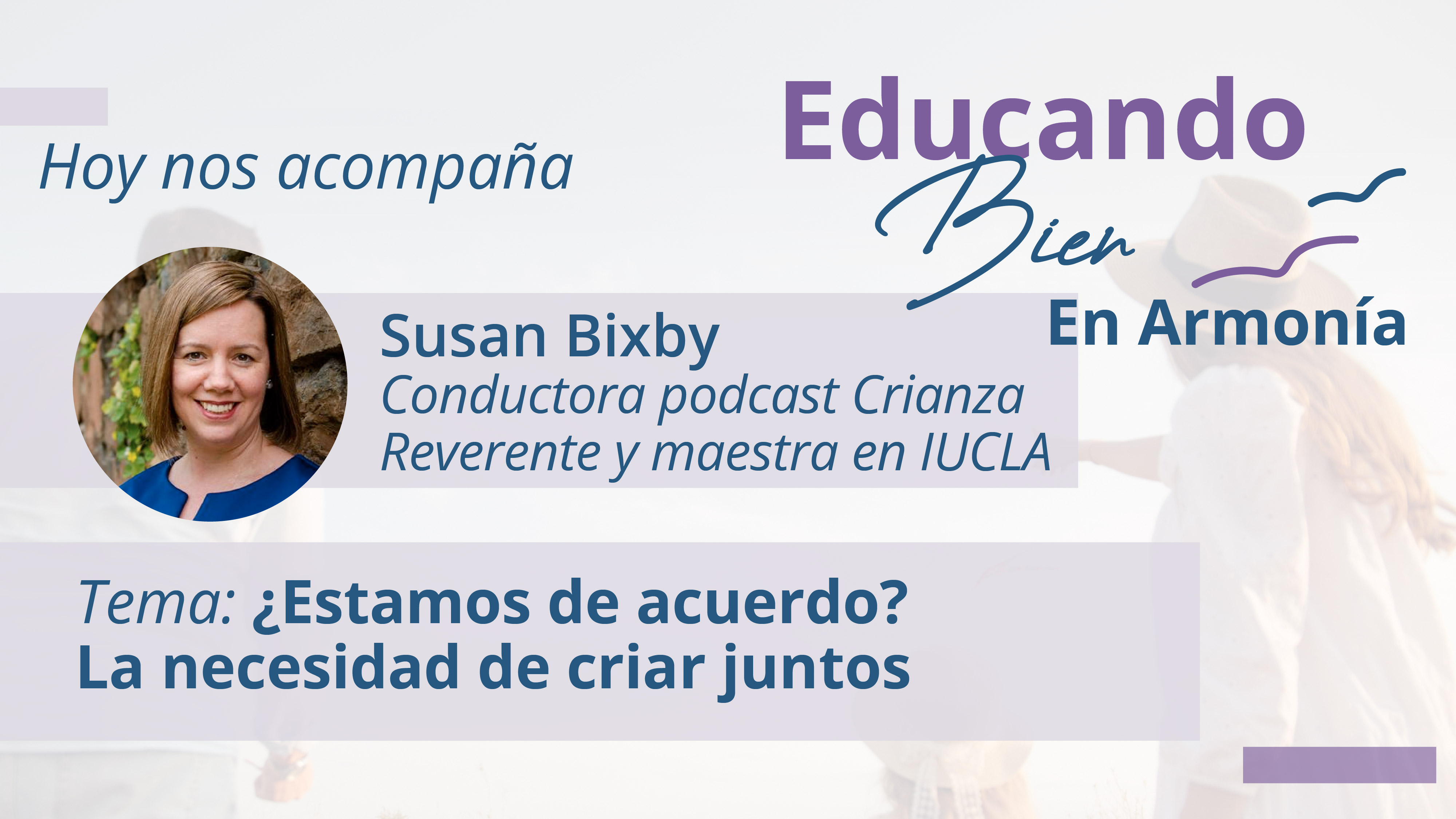 En Educando Bien tuvimos la visita de Susan Bixby, conductora del podcast Crianza Reverente y Maestra en el Instituto Universitario Cristiano de Las Américas, para conversar del tema ¿Estamos de acuerdo? La importancia de criar juntos.