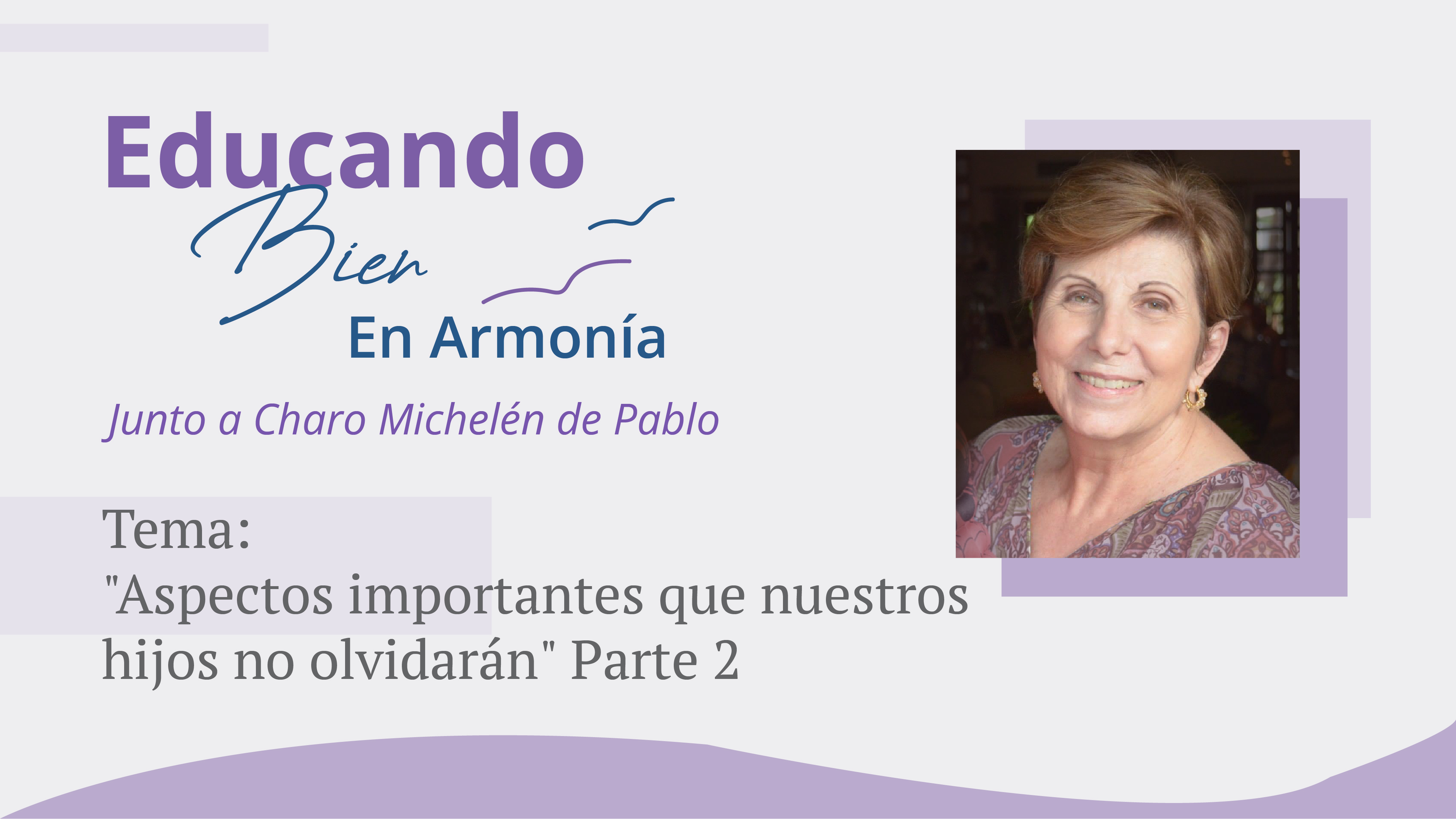 El martes 18 de octubre las hermanas la hermana Charo Michelén y María Cristina Munizaga estuvieron conversando acerca de "Los Aspectos importantes que nuestros hijos no olvidaran" en el espacio del programa “Educando Bien en Armonía”,  Educando Bien suena en Armonía cada Martes a las 10:00 hrs. trayendo enseñanzas bíblicas sobre la crianza de los hijos.
